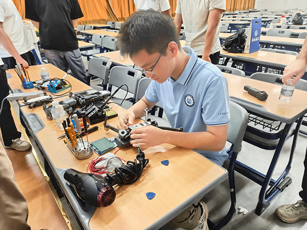 为了让同学们对无人机技术有更直观、深刻的认知,宣讲会特意安排了精彩的户外试飞环节与现场维修讲解。在学校操场上,专业教练操控无人机腾空而起,灵活演示了悬停、巡航、低空飞行等多种飞行姿态,同时同步讲解不同操作对应的技巧与注意事项,引得同学们驻足观看、阵阵惊叹;试飞结束后,工程师现场对无人机进行拆解,细致展示其内部结构与核心部件,结合实物讲解维修原理与操作方法,让抽象的技术知识变得具象易懂,进一步加深了同学们对无人机技术的理解。