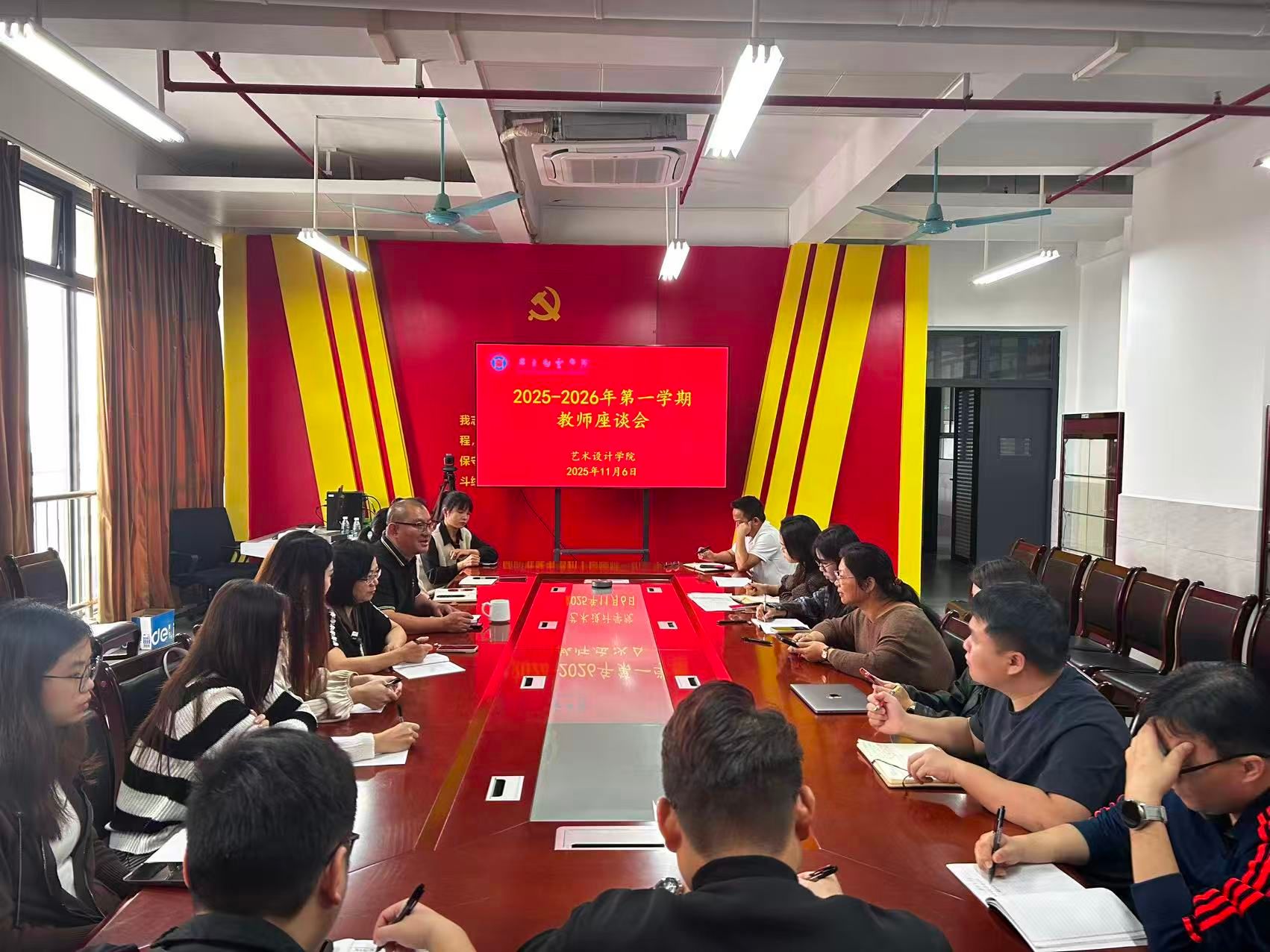11月6日,艺术设计学院2025-2026学年第一学期教师座谈会在学院会议室顺利召开。学院领导班子、各系教师代表齐聚一堂,围绕“提升教师授课质量”、“提高学生学习参与度”、“高效管理课堂”、“高效利用课堂教学质量评价数据”四大核心议题,以经验分享、问题研讨、对策建言的形式,共话设计教育改革新思路,凝聚育人发展新共识。