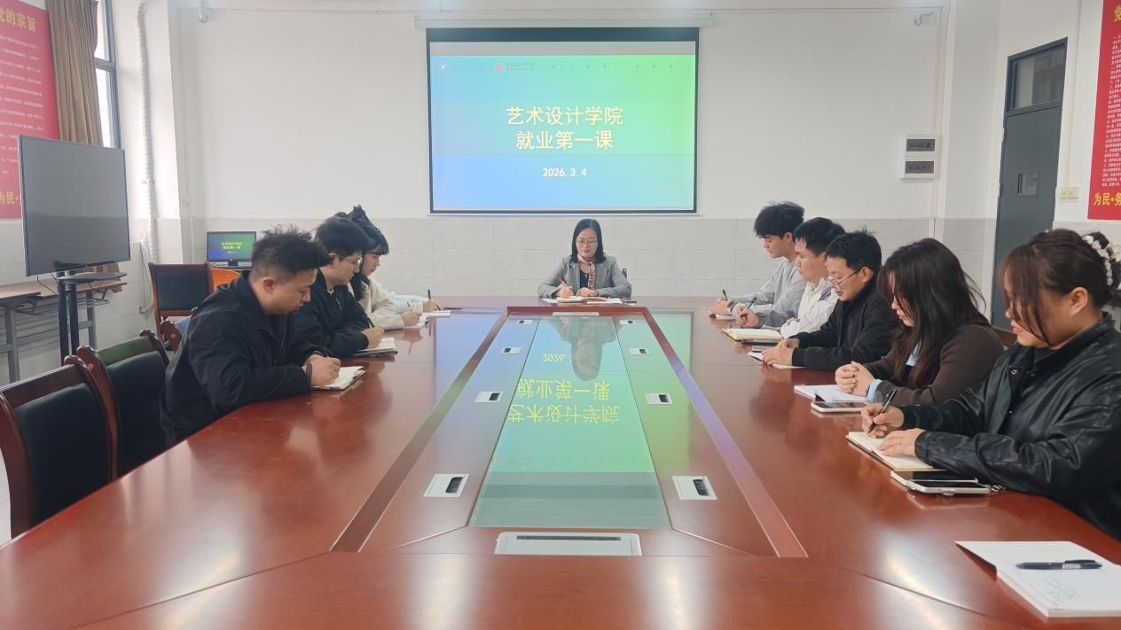 3月4日,艺术设计学院以“线上+线下”相结合的形式,面向2026届毕业生开展“就业第一课”系列活动。活动由学院党委副书记刘云华主讲,涵盖辅导员就业工作部署与毕业生就业指导课程,旨在引导师生认清就业形势、明确工作路径、提升求职竞争力,为新学年新学期就业工作拉开序幕。全体辅导员及部分毕业生代表共同参与。