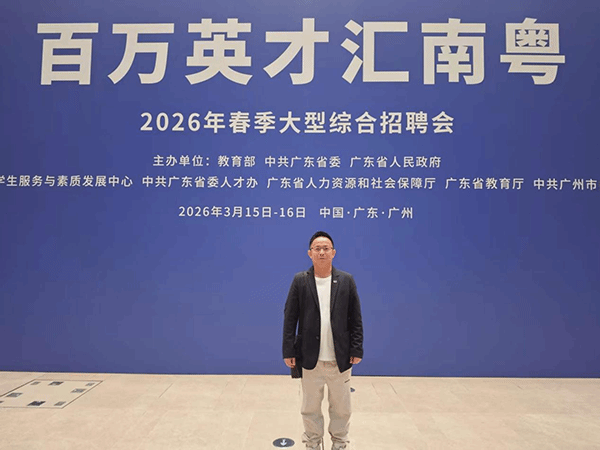 为深入贯彻落实产教融合发展战略,精准对接粤港澳大湾区文化创意产业人才需求,2026年3月15日至16日,艺术设计学院产教融合中心副主任易文国老师赴广州广交会展馆D区,参加了由教育部与广东省人民政府联合主办的“百万英才汇南粤”2026年春季大型综合招聘会。