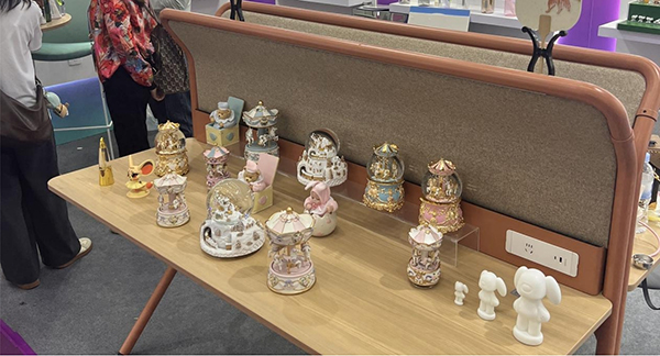 本次参展的校友企业均依托学院产教融合平台孵化成长,展品设计充分融合地方文化与现代创新理念。广附金绣以岭南传统刺绣工艺为核心,推出国潮风格家居饰品;瑞恩斯卫浴镜子采用智能防雾技术,兼顾实用性与科技感;缤客杯子以环保可降解材料为亮点,呼应全球可持续发展趋势;百利家具主打模块化设计,满足多样化家居需求;艾莉绮生物推出天然植物成分化妆品,备受国外市场青睐;曼旋实业则以创意桌面摆件展现“小而美”的工艺美学。