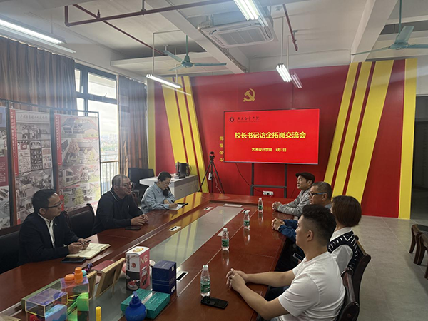 艺术设计学院院长方建松对企业总经理张文勋一行的到来表示热烈欢迎,详细介绍了艺术设计学院专业设置,学院校企合作机制,重点讲述学校六共建,共建专业、共建课程、共建实习实训基地、产业学院等校企合作情况。让学生进入学校开始参与校企项目培养,到实习岗位考核,到企业留用入职,一体化设计,实现了从学生到员工、从员工到应用型人才的无缝衔接。