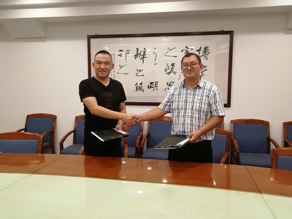 方建松副院长(右一)与雷红波董事总经理(左一)现场签约