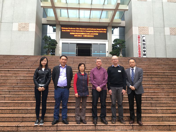 11月7日,澳大利亚埃迪斯科文大学人文艺术学院院长Clive教授一行前来我校访问,洽谈深度合作项目。广东白云学院刘越南副校长、艺术设计学院院长陈华钢教授、科研处处长周美娟教授、国际学院副院长刘毅先生出席洽谈会。