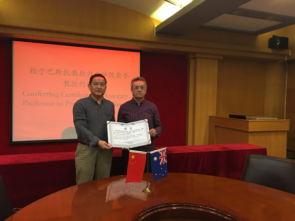 会上,刘越南副校长对Clive教授一行的到来表示热烈的欢迎,并授予Clive教授广东白云学院特邀教授的证书。双方就两校原有合作课程项目的落实情况,以及联合申报“设计学”省级重点学科的建设工作进行了富有成效的探讨,并举行了由广东白云学院与澳大利亚埃迪斯科文大学合作成立的“中澳设计研究院”挂牌仪式。