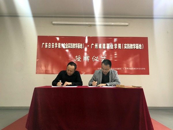 11月2日,广东白云学院艺术设计学院与东莞市新风格艺术文化学校共建企业实践教学基地签约仪式在东莞举行,艺术设计学院陈华钢院长一行及新风格艺术文化培训学校领导等出席了签约仪式并进行揭牌。