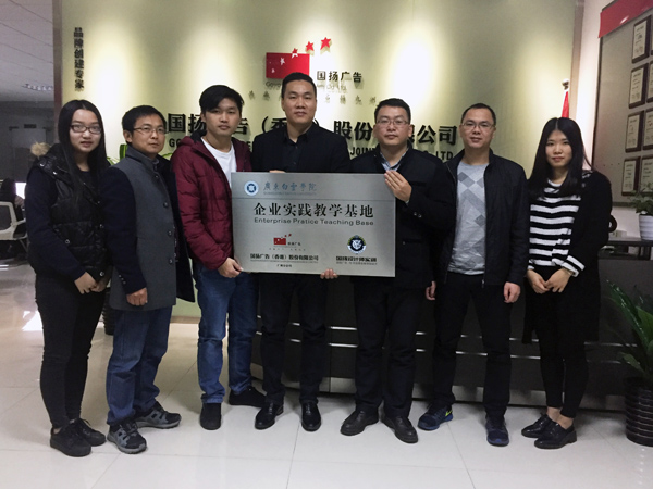 1月8日上午,广东白云学院艺术设计学院企业实践教学基地挂牌仪式在国扬广告(香港)股份有限公司举行。国扬广告(香港)股份有限公司黄扬义总经理与我校视觉传达设计系系主任马文镰老师、职业导师易文国老师、李绮常老师以及B13视觉传达设计专业的实习生们参加了本次基地挂牌仪式。