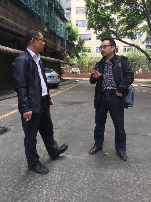 成骏副院长(右)与总经理黄浩格介绍我院教育教学情况