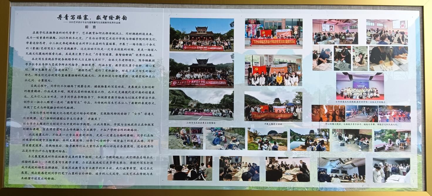 2025 年秋冬之交,广东白云学院艺术设计学院与传媒学院师生怀揣这一思考,分三批次奔赴湖南省永州市江永县勾蓝瑶寨,开展了为期二十余天的《素描 / 色彩写生》校外实践教学活动。这场实践不仅是一次专业技能的集中锤炼,更是一场深入民族文化腹地的探索之旅,其丰硕成果悉数汇聚于 “丹青写瑶寨,数智绘新韵” 优秀作品展。