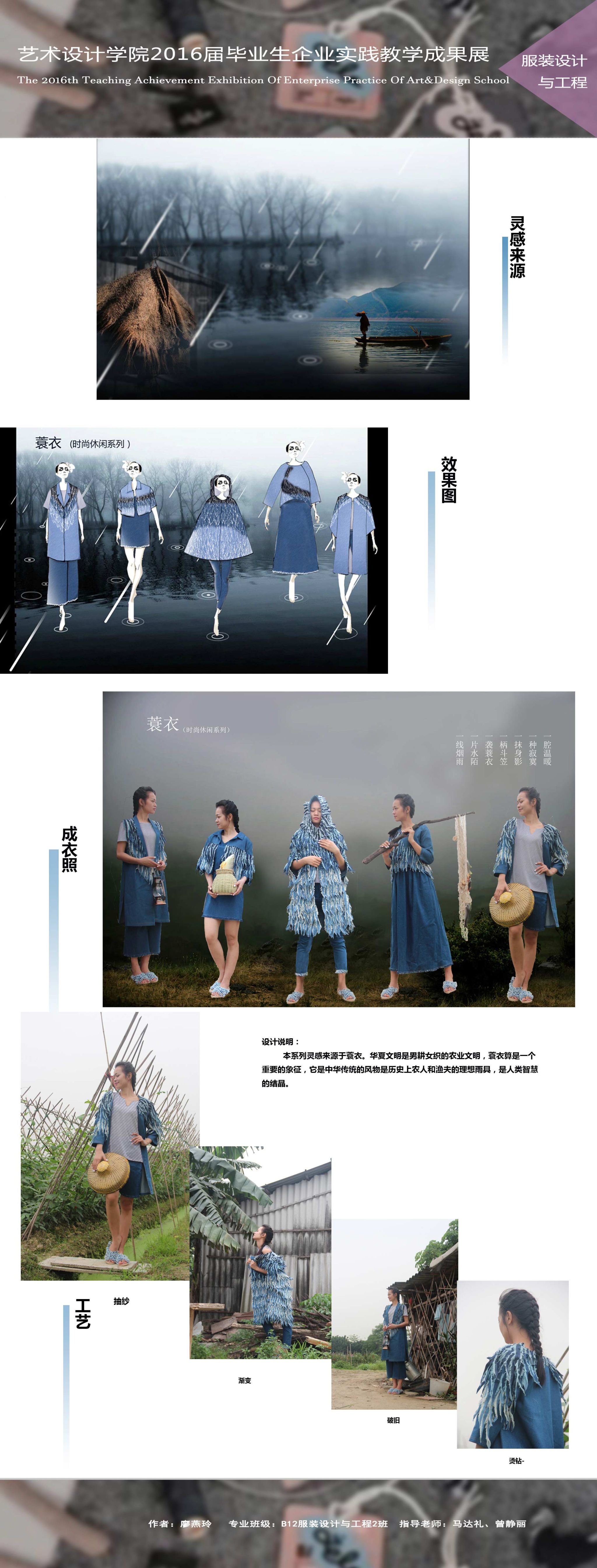 2016届毕业生企业实践教学成果展—《蓑衣》;作者:廖燕玲;B12服装设计与工程2班(服装设计方向)
