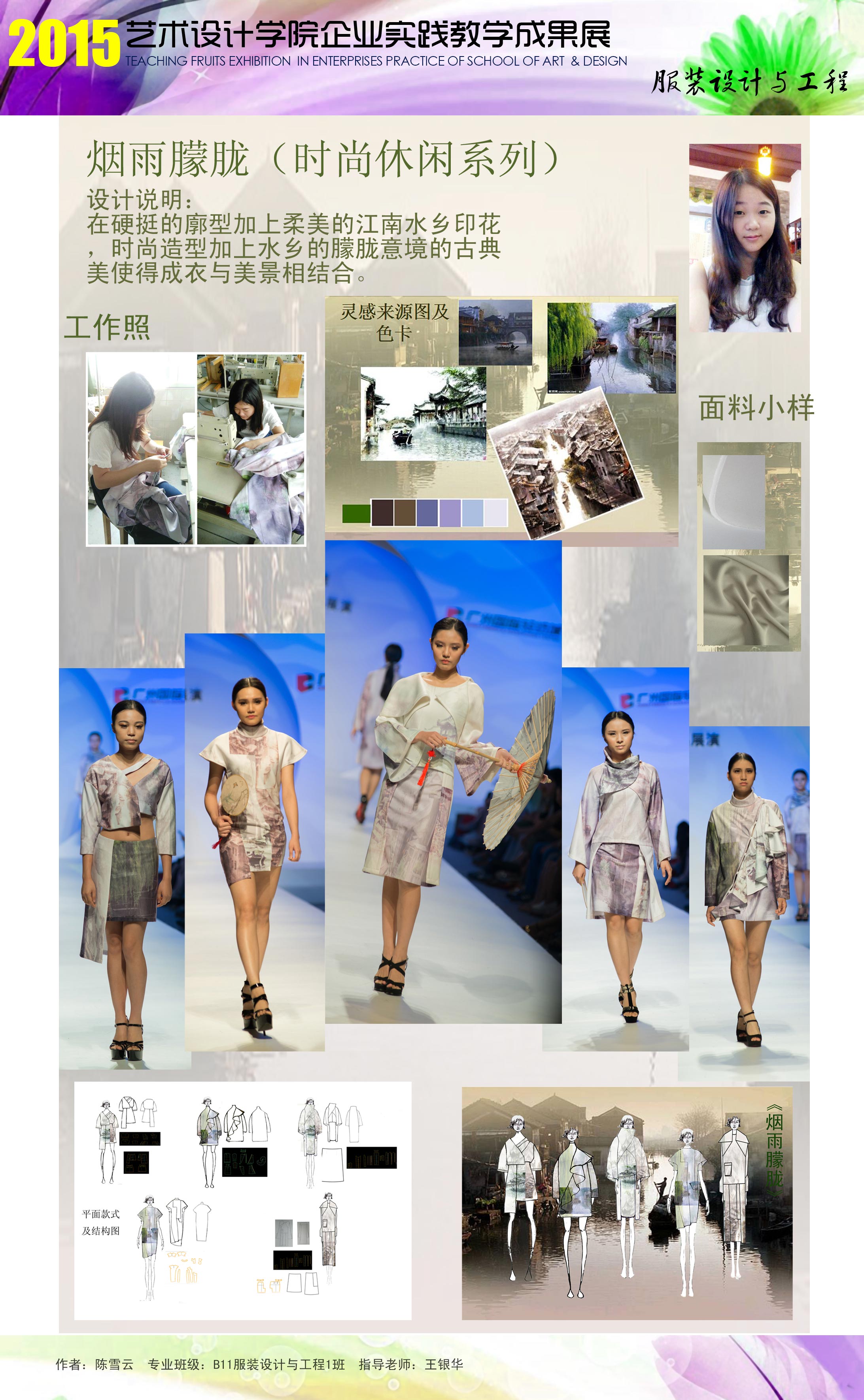 2015年学生参加企业教学实践成果展—《烟雨朦胧》;作者:陈雪云;B11服装设计与工程1班