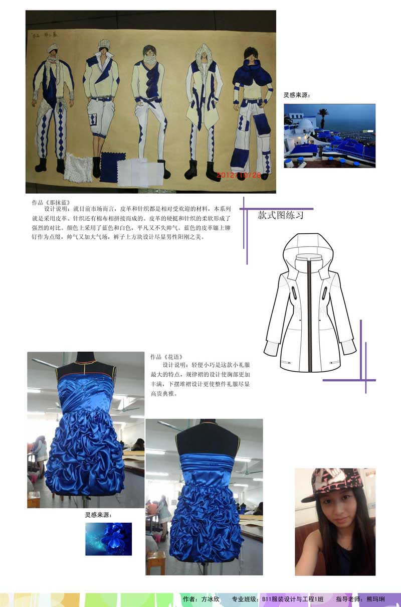 作品名称:那抹蓝;专业班级:B11服装设计与工程1班;作者:方冰欣;指导老师:熊玛琍
