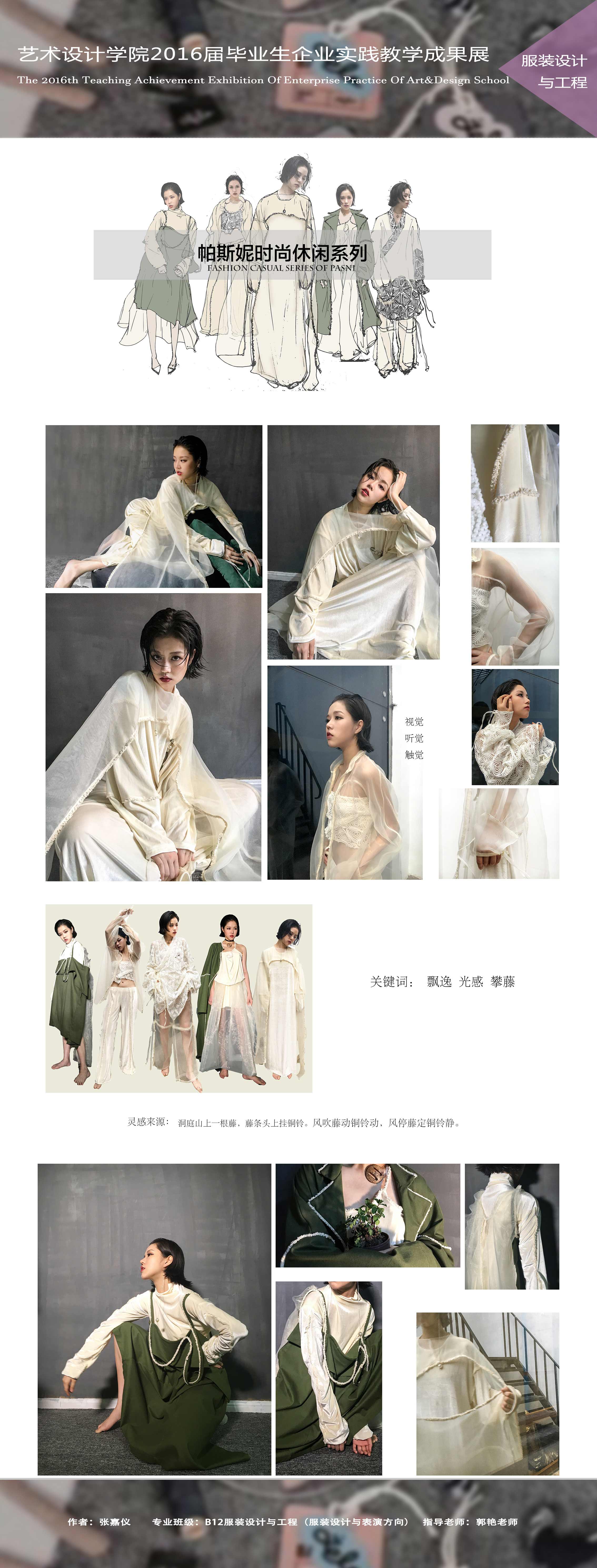 2016届毕业生企业实践教学成果展—《帕斯妮时尚休闲系列》;作者:张嘉仪;B12服装设计与工程2班(服装设计与表演方向)