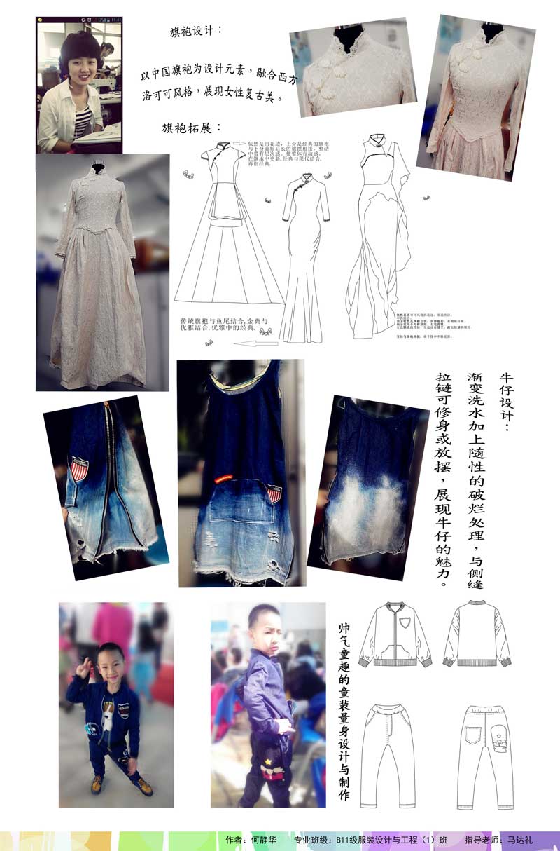 作品名称:旗袍;专业班级:B11服装设计与工程1班;作者:何静华;指导老师:马达礼