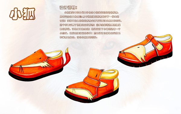 2018中国国际鞋类设计大赛最佳色彩搭配奖《小狐》;作者刘付璧玉;指导老师黄国宝