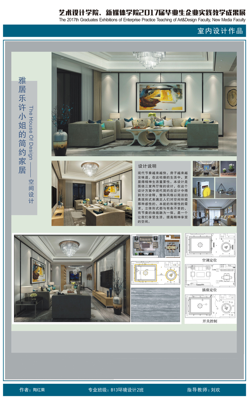 2016届毕业生企业实践教学成果展—《现代简约住宅设计》;作者:方蕴莹;B12艺术设计4班(室内设计方向)