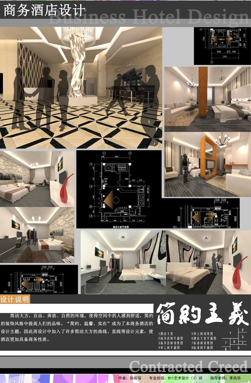 作品名称:商务酒店;专业班级:B11室内设计;作者:孙瑶瑶;指导老师:李凤华