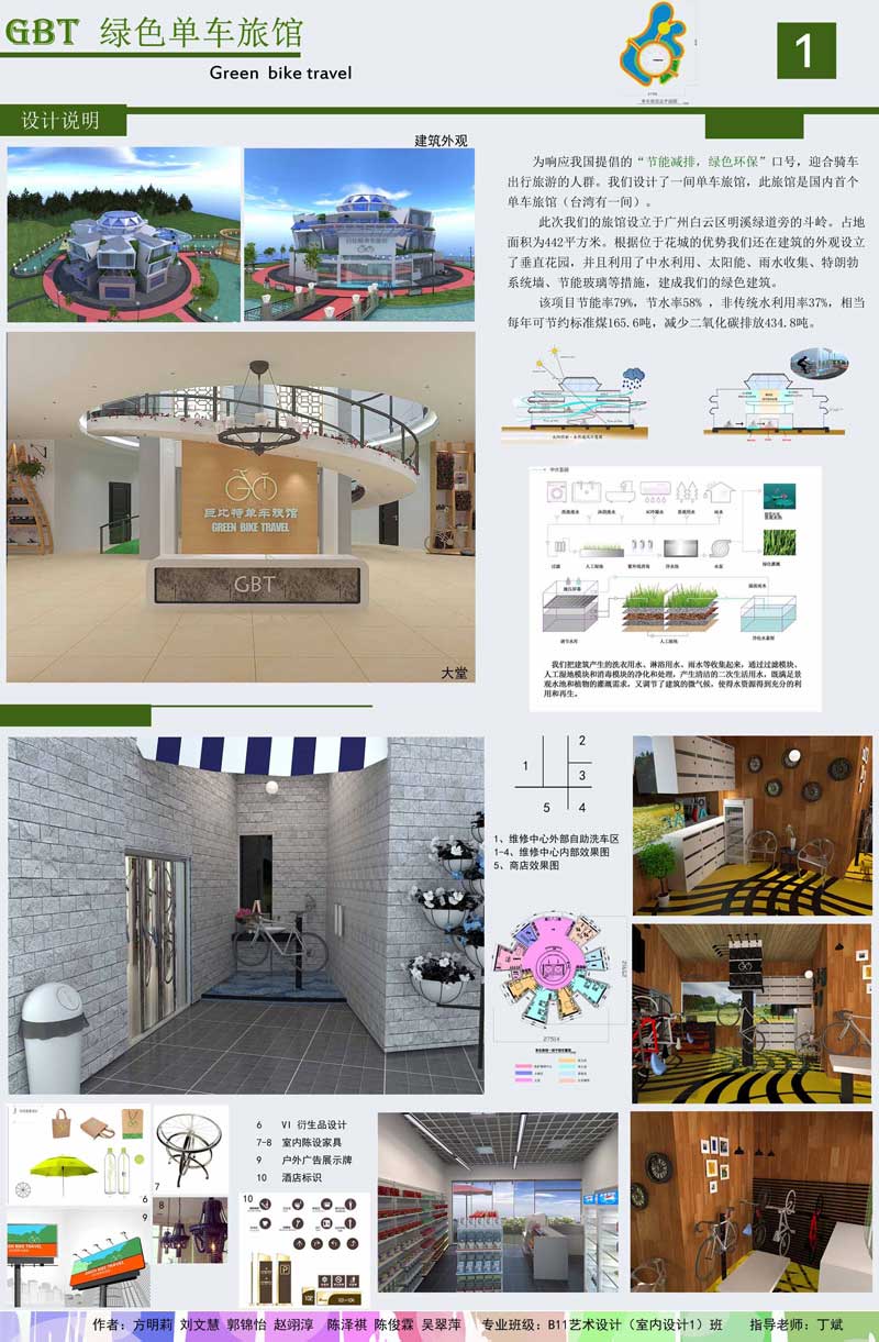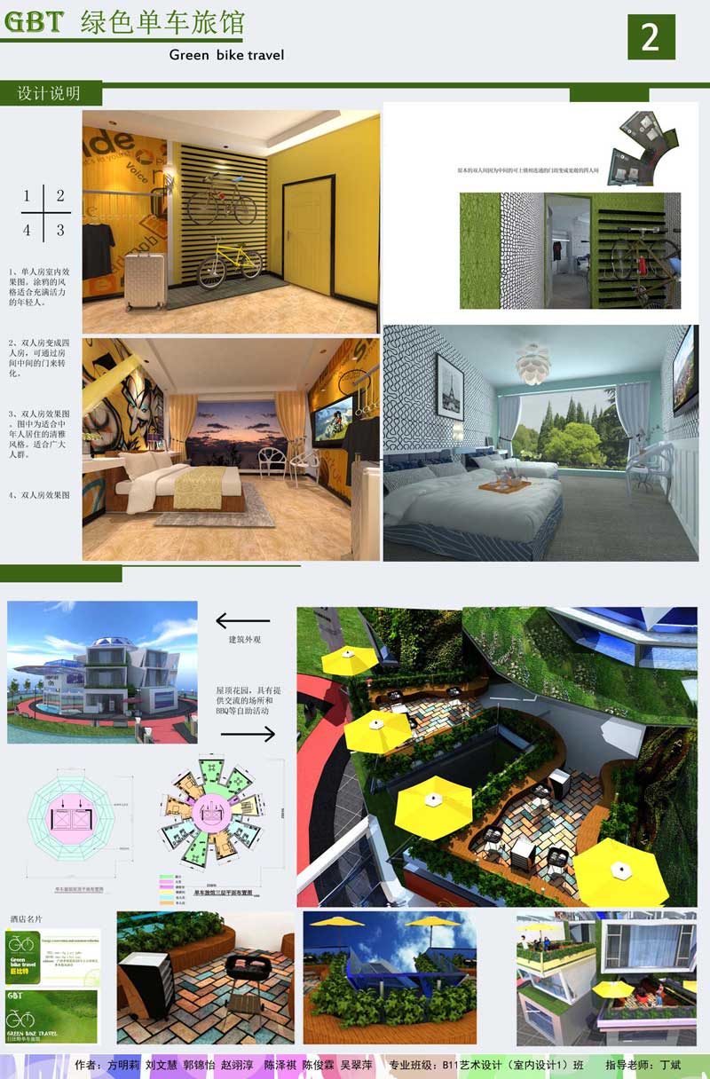 作品名称:绿色单车旅馆2;专业班级:B11室内设计;作者:方明莉、刘文慧;指导老师:丁斌