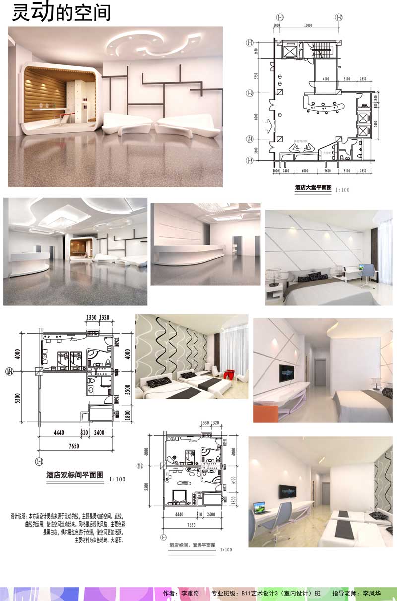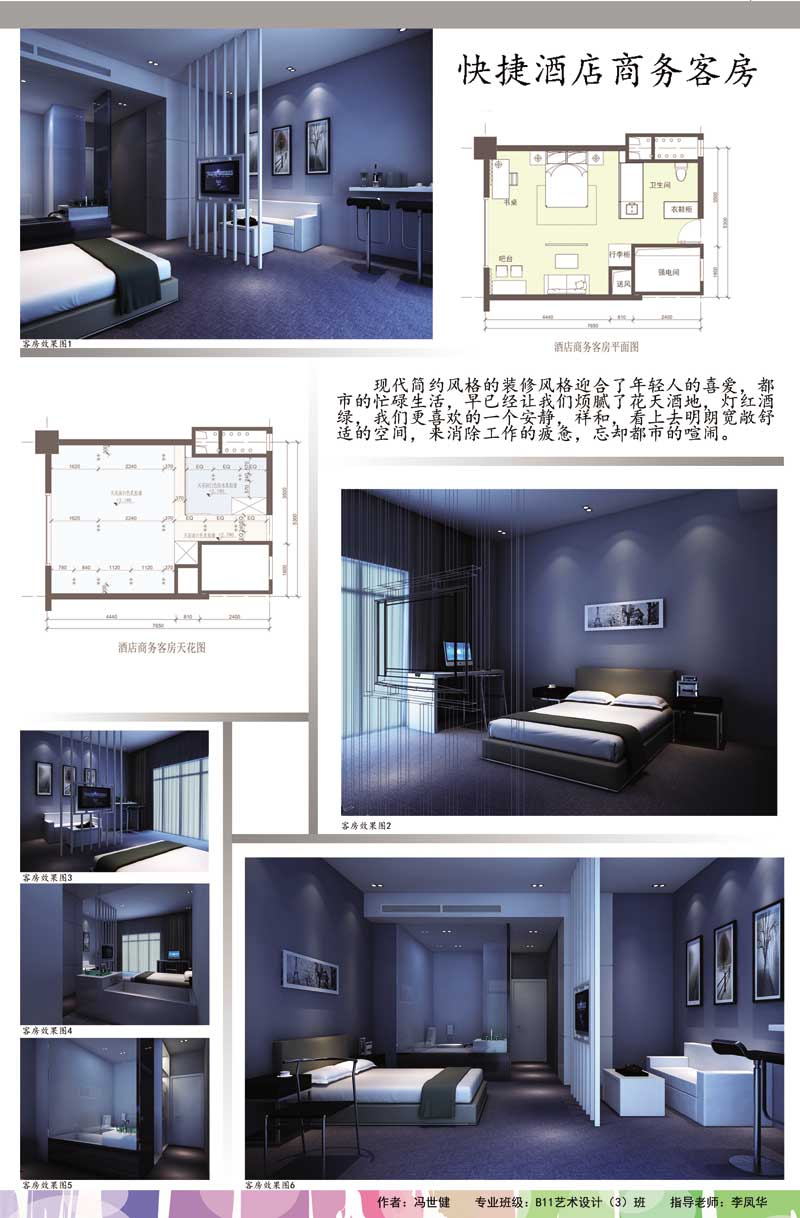 作品名称:快捷商务酒店;专业班级:B11室内设计;作者:冯世健;指导老师:李凤华