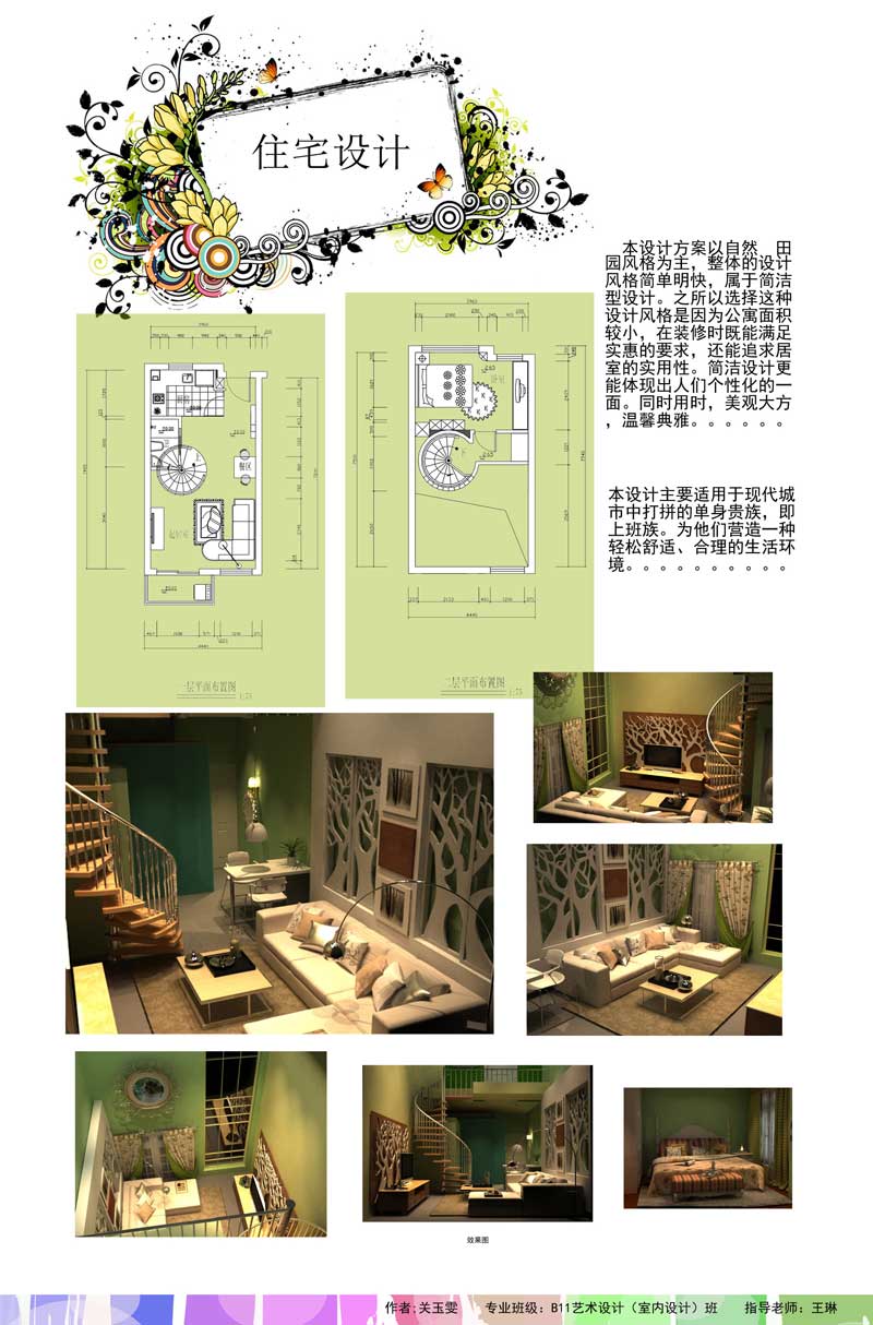 作品名称:住宅设计;专业班级:B11室内设计;作者:关玉雯;指导老师:王琳