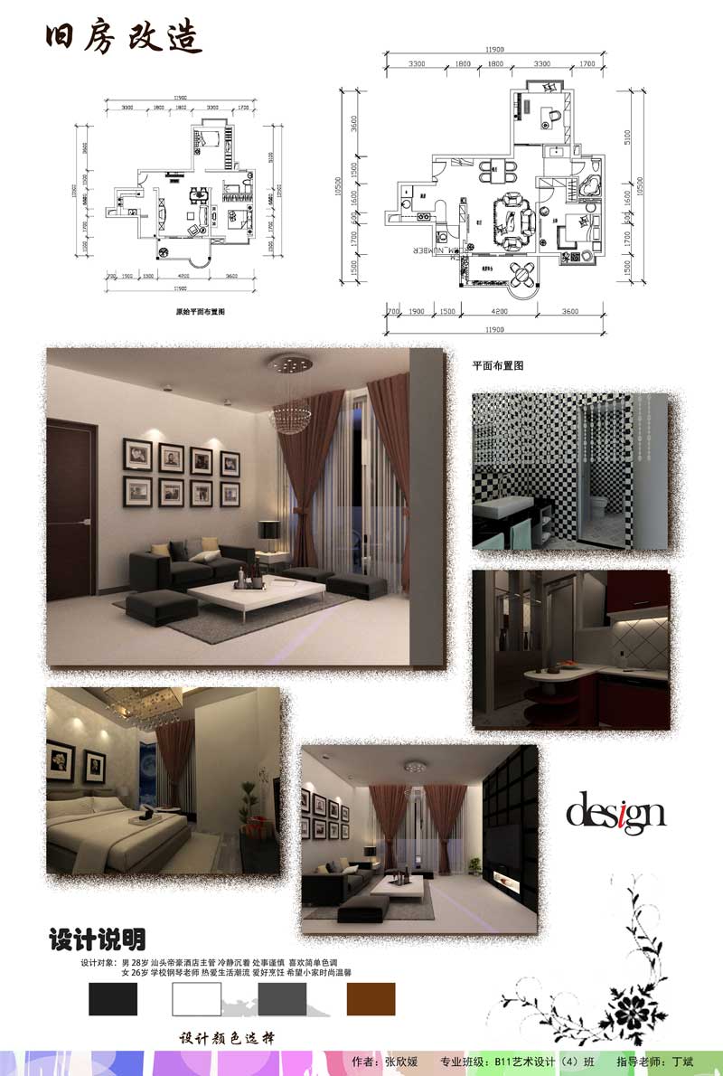 作品名称:旧房改造;专业班级:B11室内设计;作者:张欣媛;指导老师:丁斌