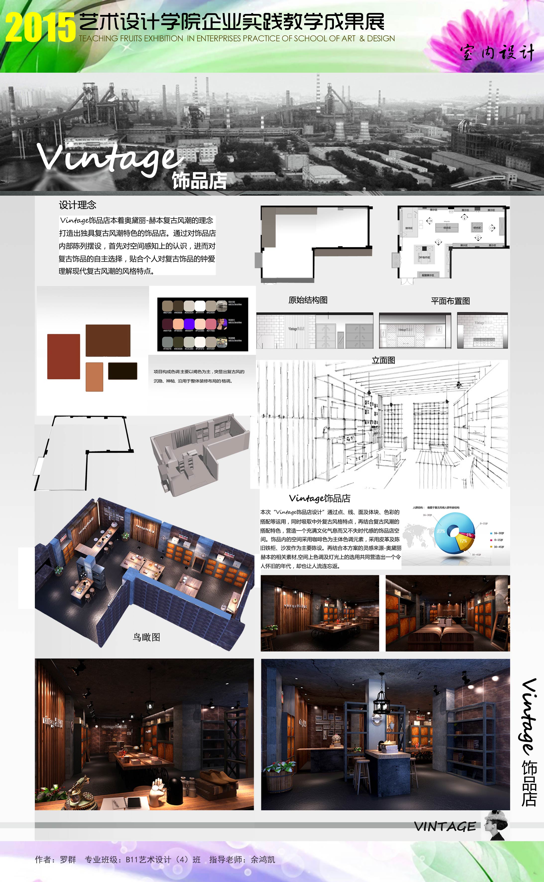 2015年学生参加企业教学实践成果展—《Vuntage饰品店设计》;作者:罗群;B11艺术设计4班(室内设计方向)