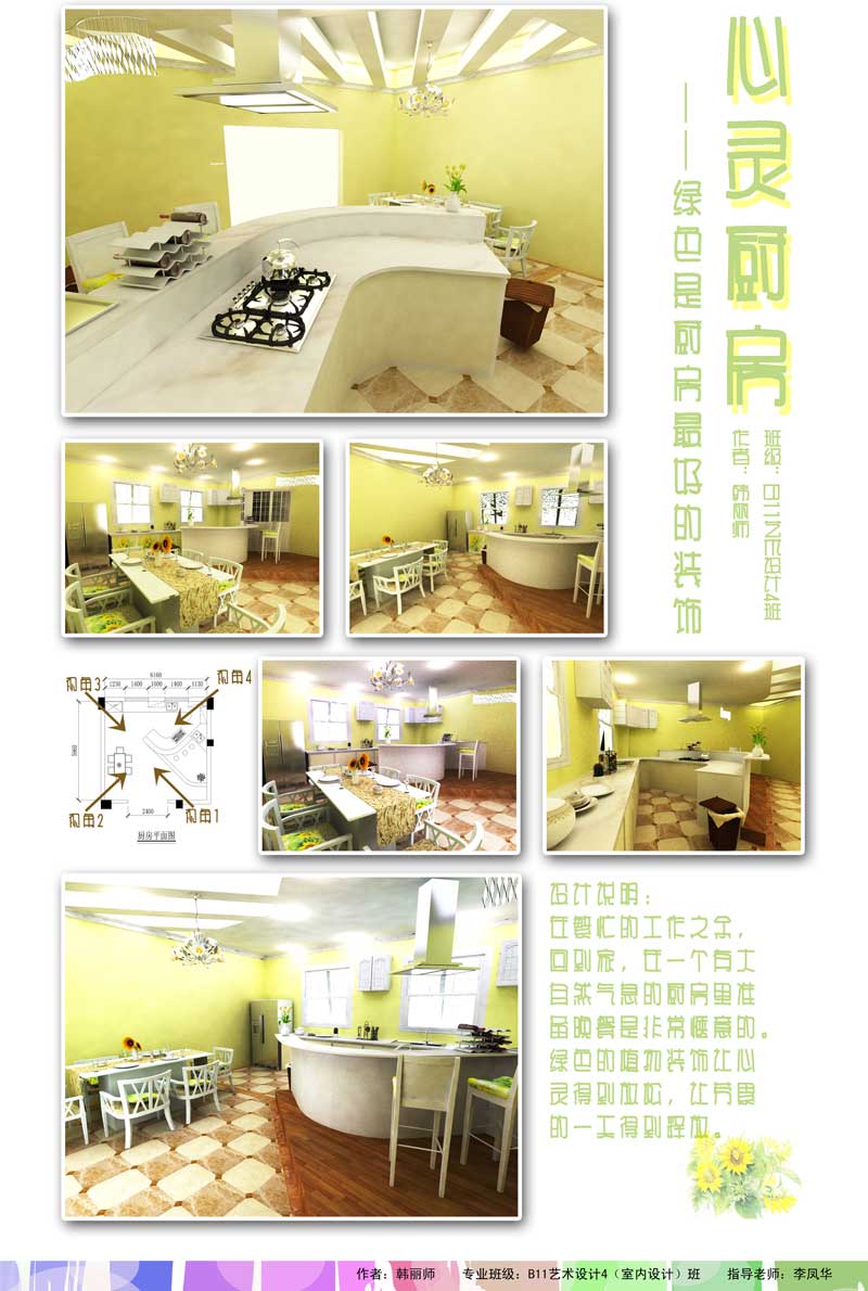 作品名称:心灵厨房;专业班级:B11室内设计;作者:韩丽师;指导老师:李凤华