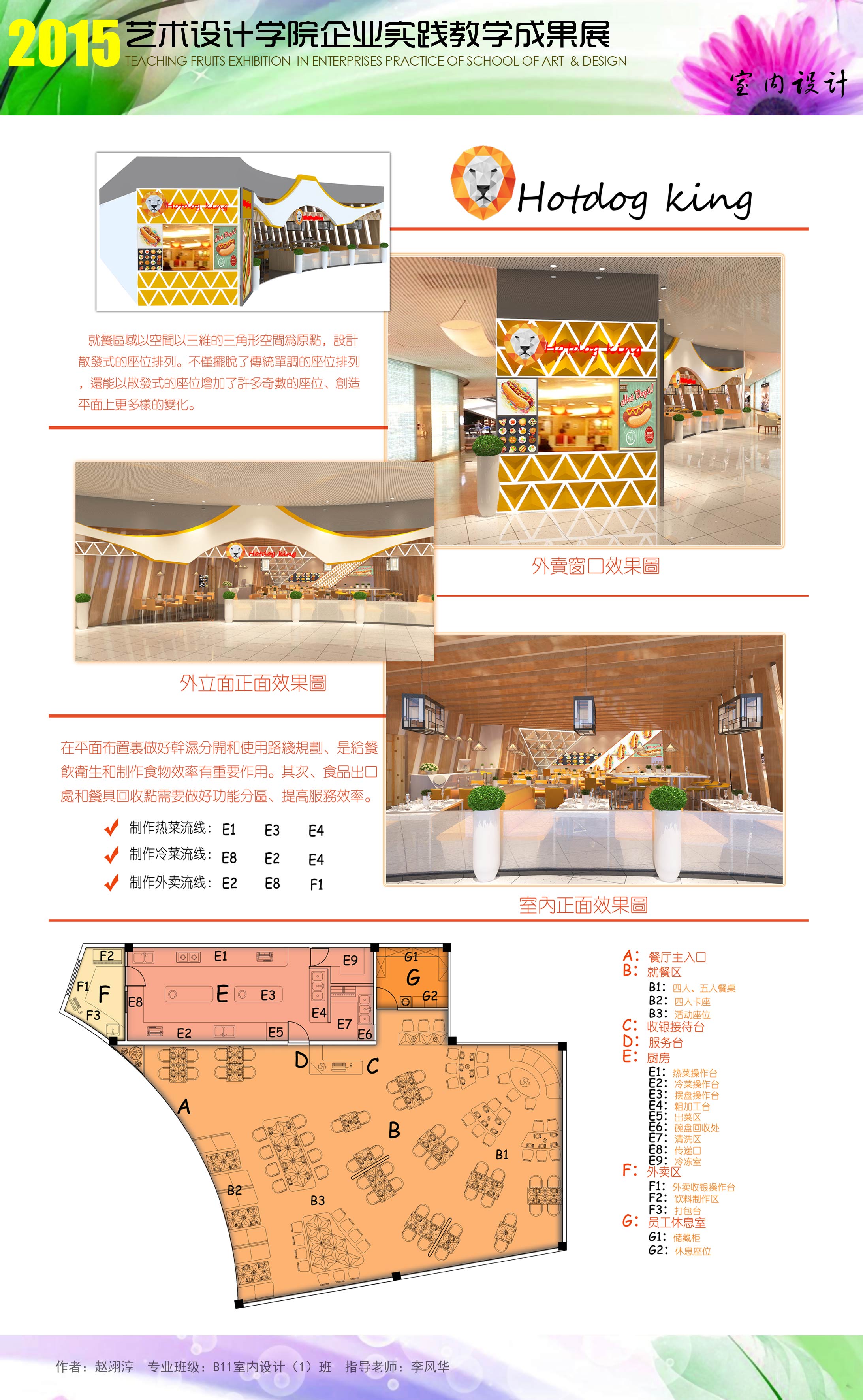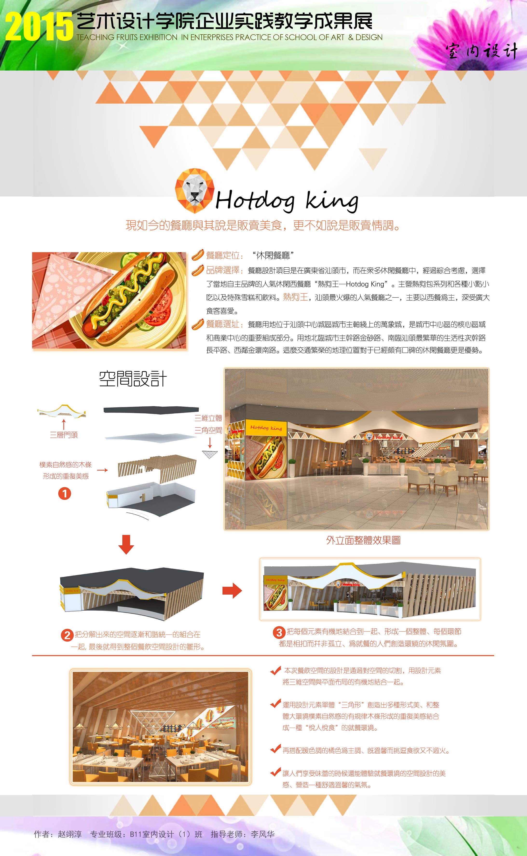 2015年学生参加企业教学实践成果展—《Hotdog-King》;作者:赵翊淳;B11艺术设计1班(室内设计方向)