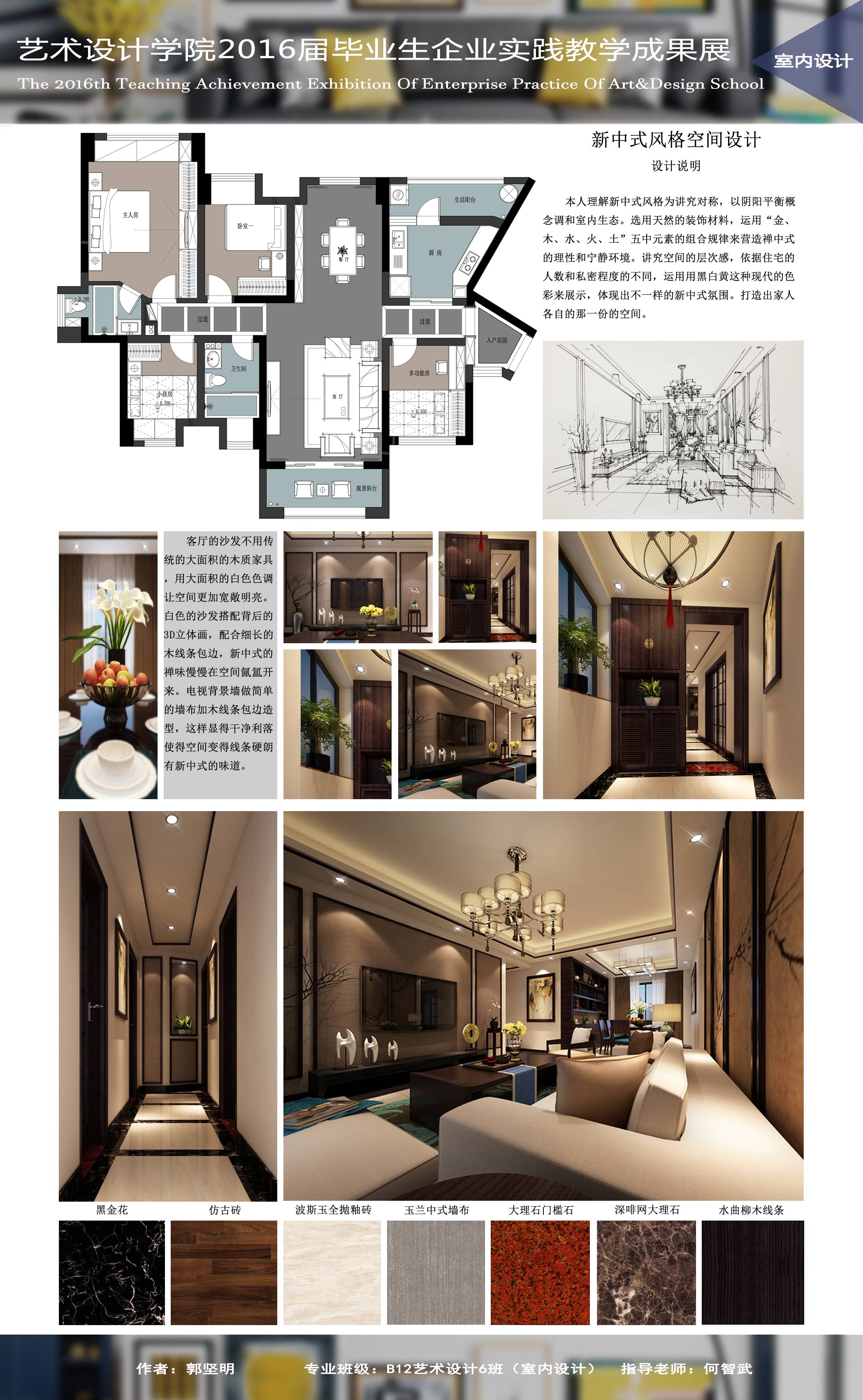 2016届毕业生企业实践教学成果展—《新中式风格空间设计》;作者:郭坚明;B12艺术设计6班(室内设计方向)