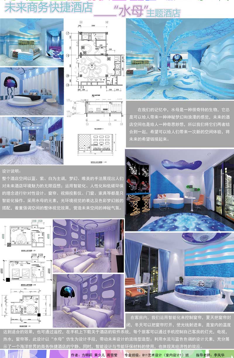 作品名称:水母主题酒店;专业班级:B11室内设计;作者:方明莉、黄少儿;指导老师:李凤华