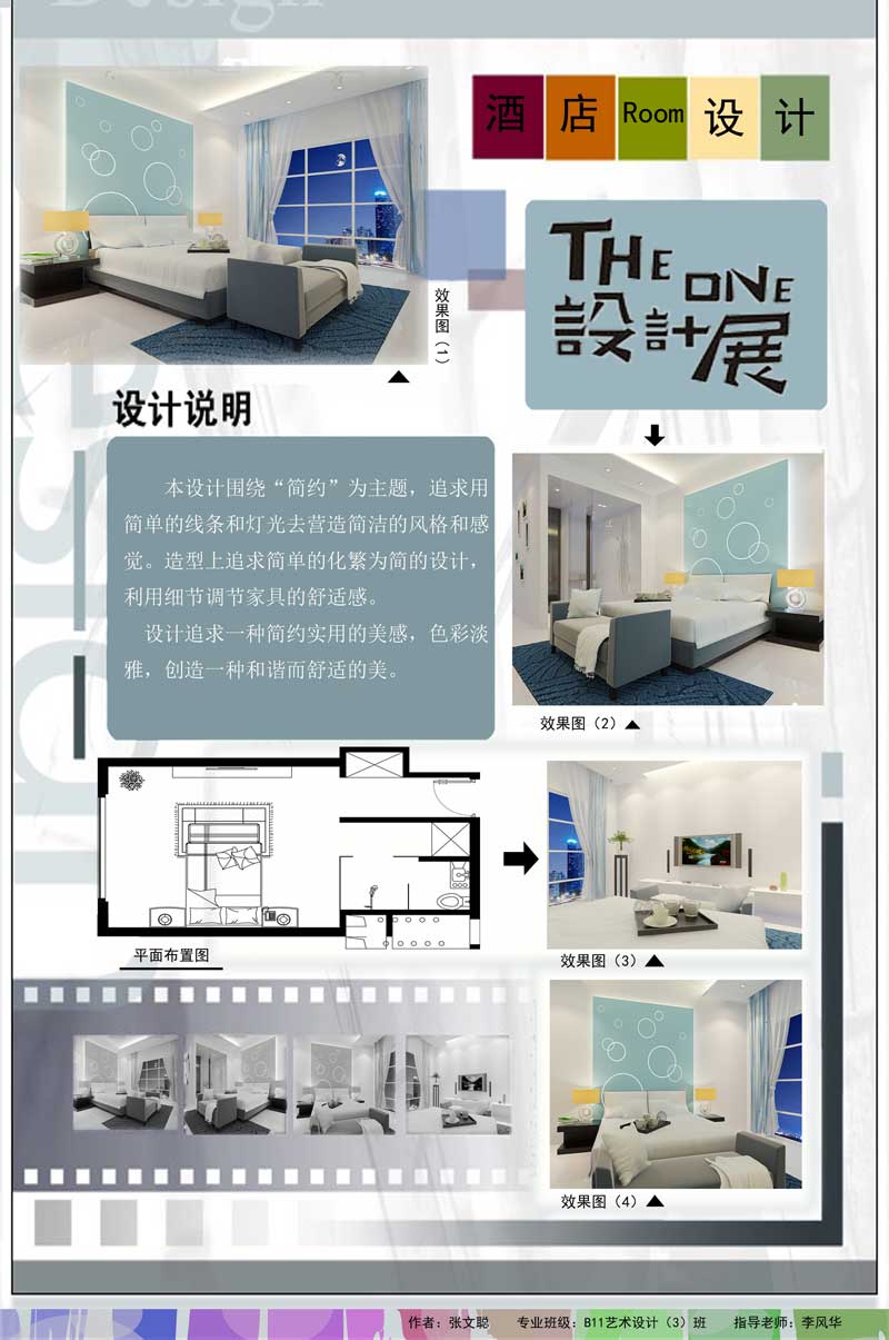 作品名称:酒店room设计;专业班级:B11室内设计;作者:张文聪;指导老师:李凤华