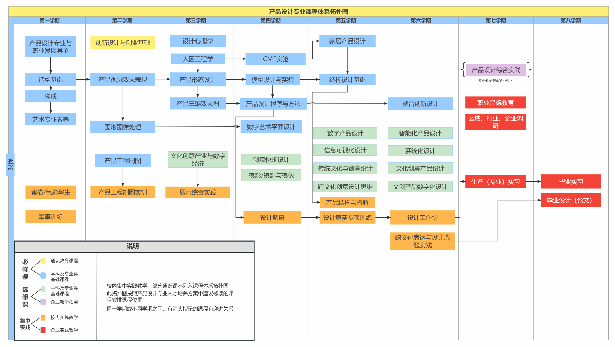 企业实践教学:产品设计策略管理、AI驱动产品创新应用、职业品德教育、区域、行业、企业调研(3选1)、专业(生产)实习、毕业实习、毕业设计。